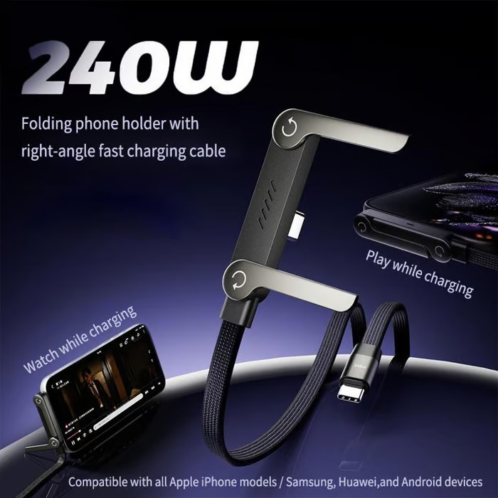 The hidden bracket on the charging head seamlessly supports your phone for hands-free viewing. Conceal wires effortlessly, mount securely, and free your hands for uninterrupted productivity in one innovative design.